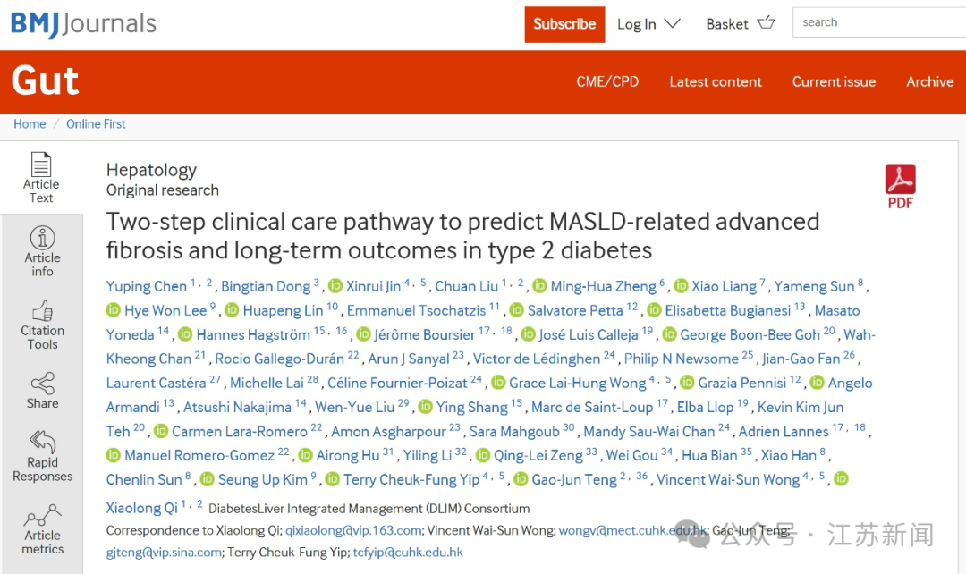 目前,江蘇省已建成120家基層慢病篩防中心,在2025版建設(shè)標(biāo)準(zhǔn)中已推薦對(duì)肝纖維化高風(fēng)險(xiǎn)人群進(jìn)行早期篩查。東大這項(xiàng)成果恰好為基層落實(shí)“糖肝共管”提供了技術(shù)支撐,讓更多患者在基層就能完成早期風(fēng)險(xiǎn)識(shí)別。